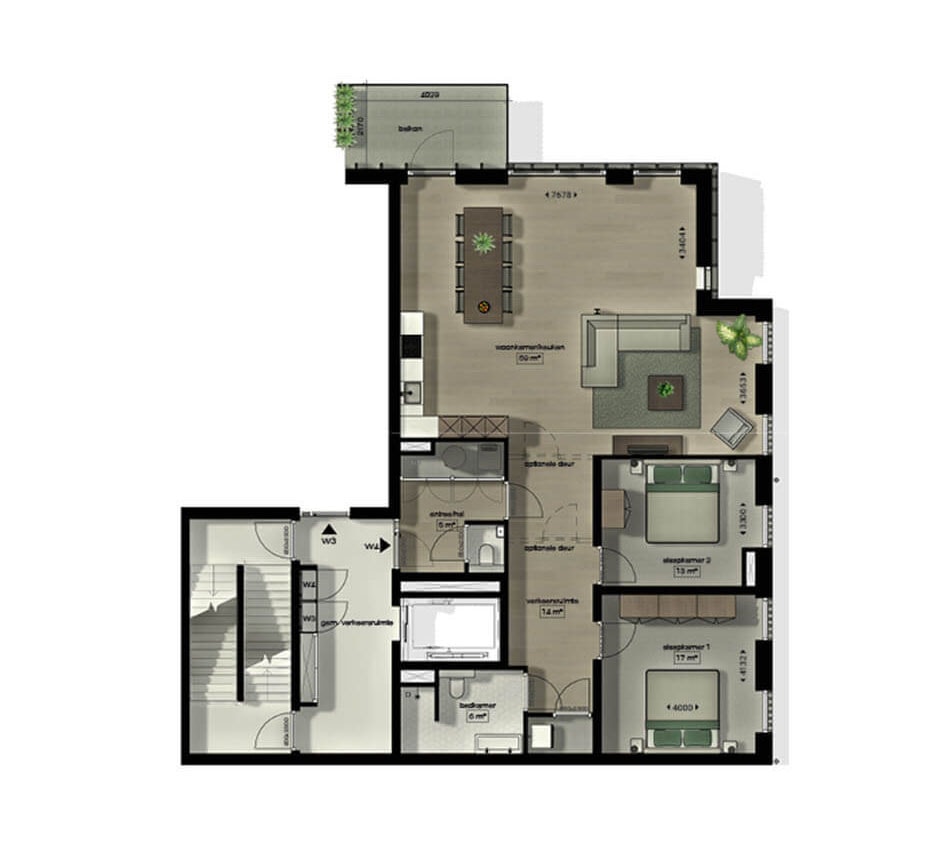 Een driekamerappartement met een riant balkon aan de achterzijde en een ruime entree/hal. Je vindt dit appartement op de 1e verdieping.
