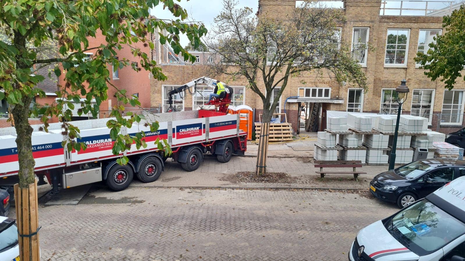 En is er ook een grote levering geweest van het kalkzandsteen voor de binnenwanden welke komende week geopperd zullen worden en er gestart wordt met lijmwerk